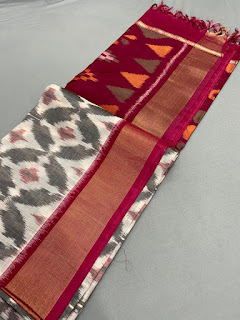 Here is the latest ikkath sico sarees with contrast color combinations paired with blouse